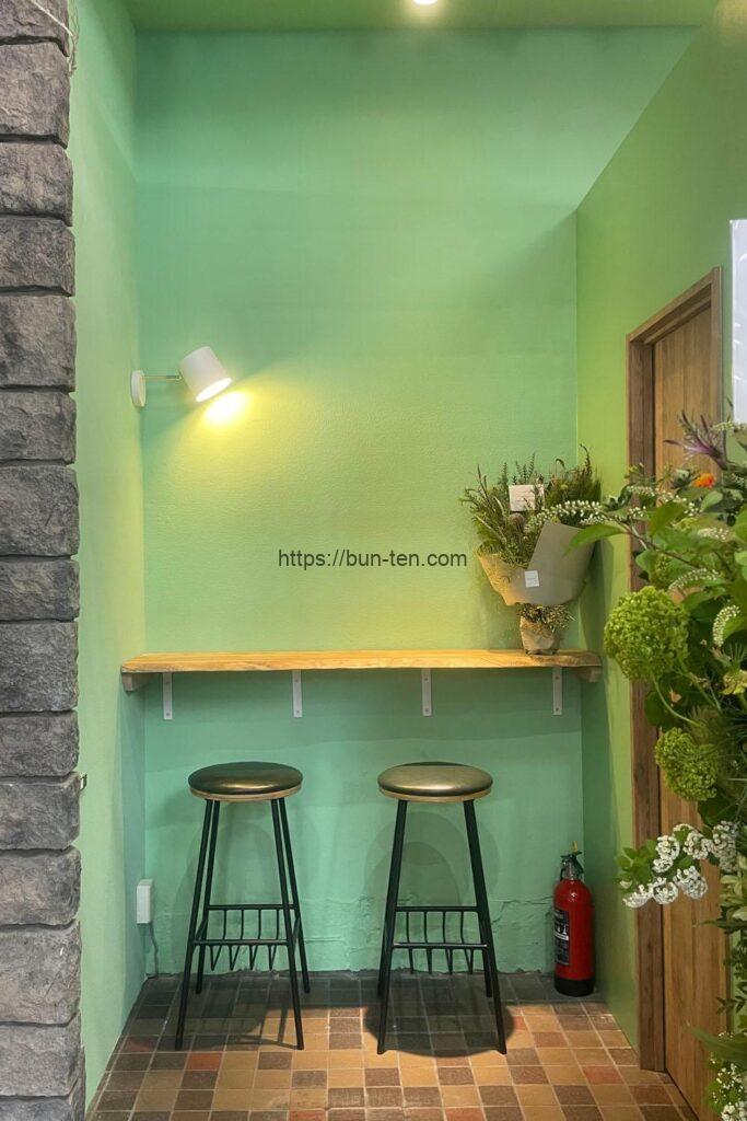 爽やかなグリーンの壁で写真も撮りやすいですよ。