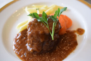 ビーフギネスシチューの特徴は、何といってもナイフがいらないほどやわらかく、味わい深いお肉です。ソースの甘みと肉の旨味がたまりません。お肉が好きな方はぜひ、英一番館のビーフギネスシチューを!