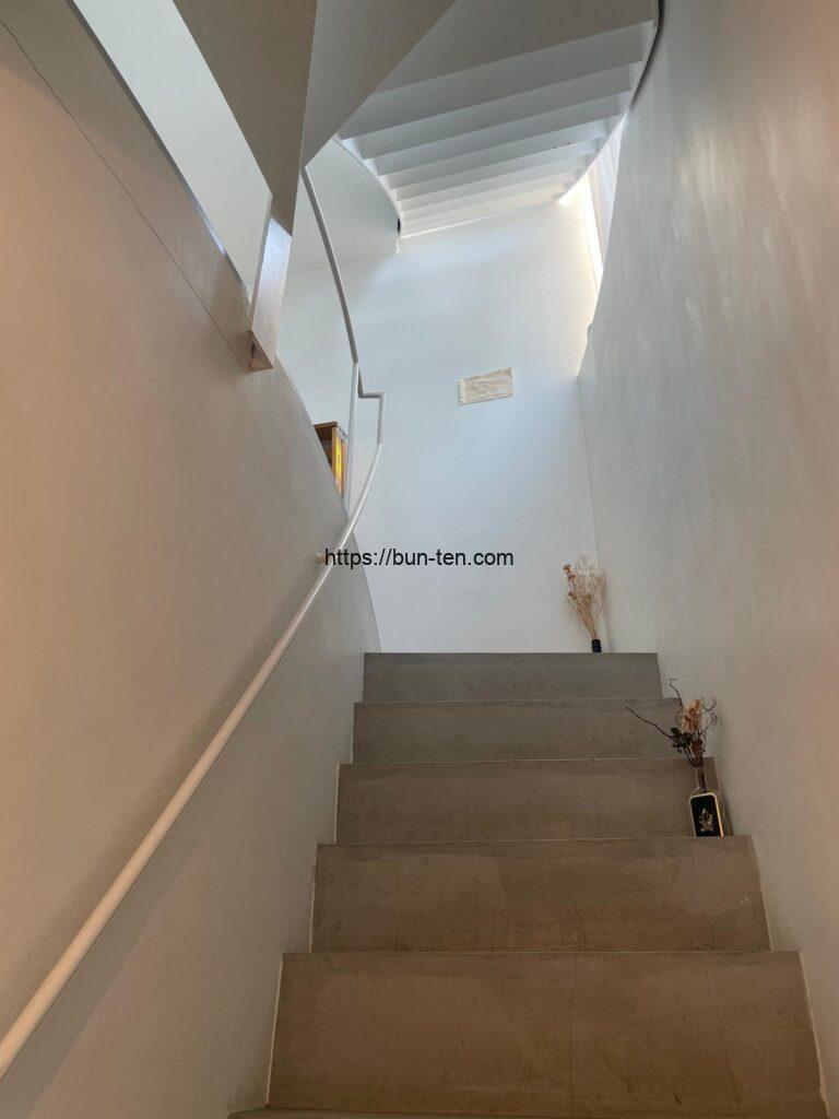 お店のお知らせにもありますが、階段がとても急です。必ず手すりを持って、気をつけて上がってくださいね。