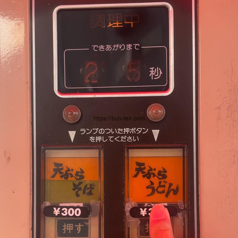 今回は、生卵「高砂の夕日」(1個60円)を購入。(卵はそのまま手渡しされるので、麺に入れる前に割ってしまわないようにご注意を!) そして300円を投入し、25秒待ちます。