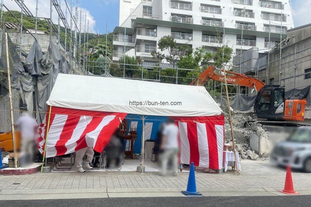 その後は長らく廃墟でしたが、最近解体工事が実施され、本日、地鎮祭が行われていました。