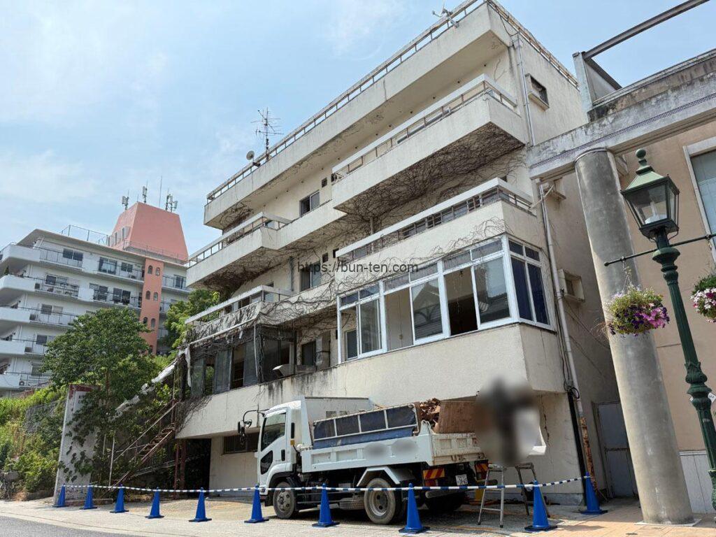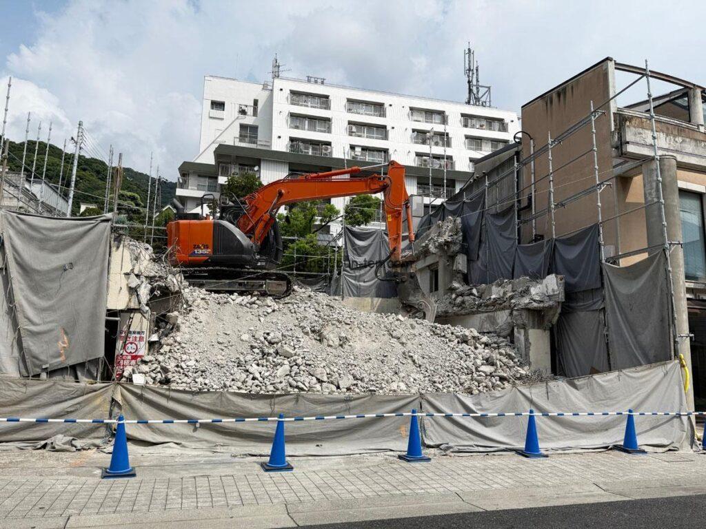 解体工事に関する看板にも、工事開始日が7月1日となっていましたので、たまたま解体工事初日に前を通りかかったことがわかりました。