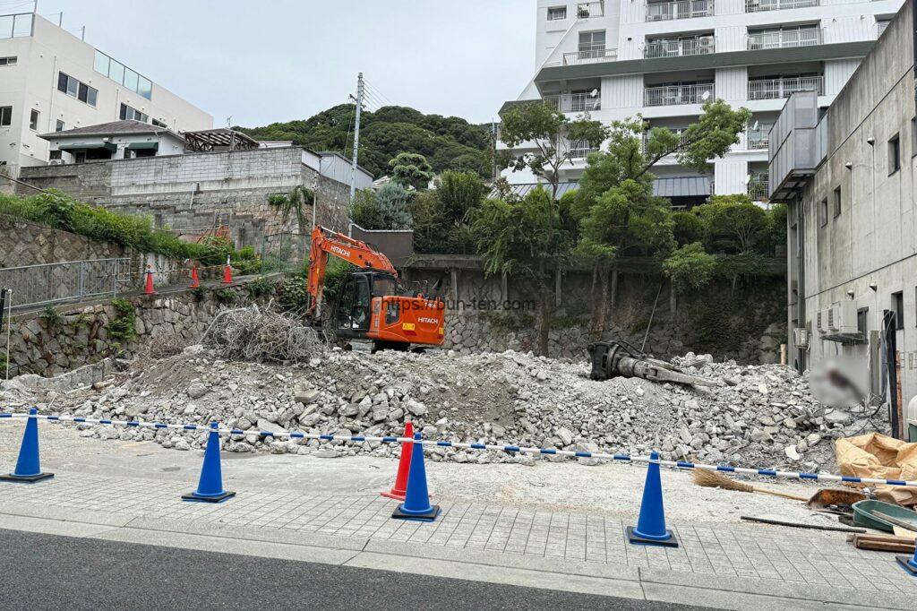 解体工事に関する看板にも、工事開始日が7月1日となっていましたので、たまたま解体工事初日に前を通りかかったことがわかりました。