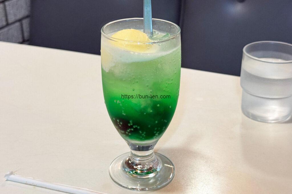 純喫茶ファンの皆様、クリームソーダはバッチリありますよ!クリームソーダは450円です(2025年6月現在)