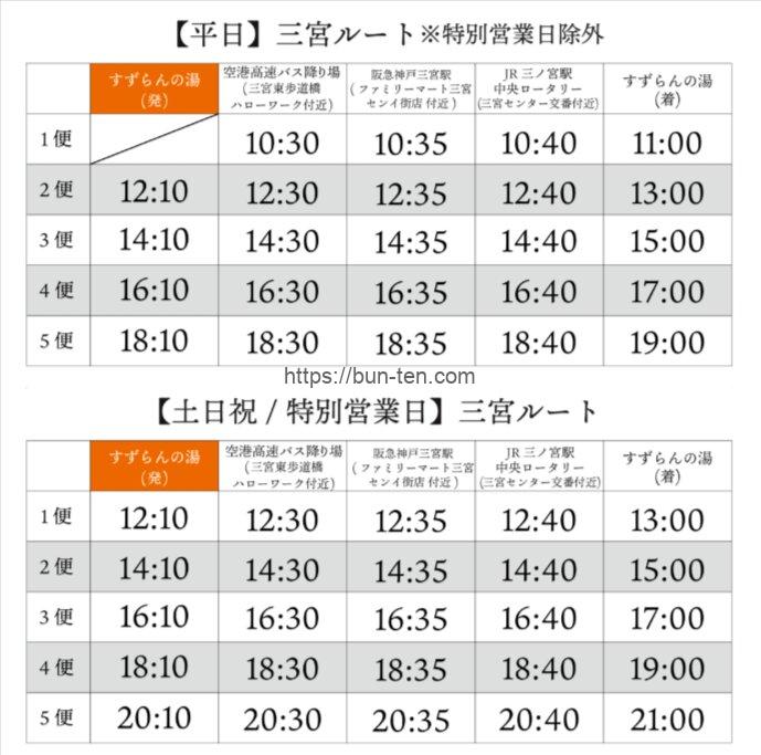アクセス:無料送迎バス「三宮」3か所より乗車して約20分